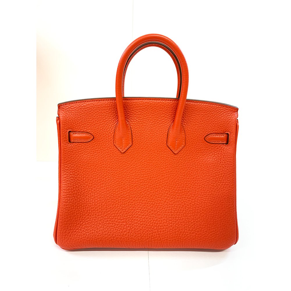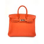 HERMES Birkin 25cm, Red, Togo Leather, Palladium Hardware