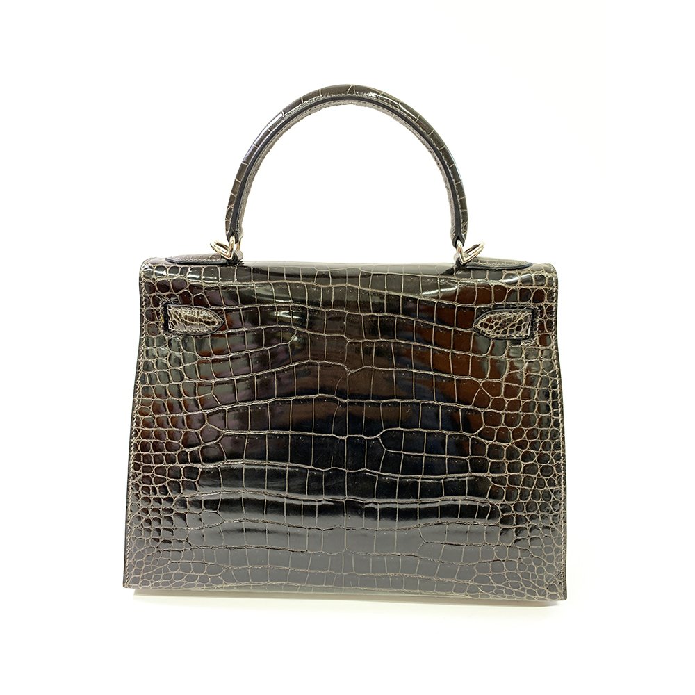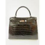 HERMES Kelly 28cm, Black, Porosas Leather, Palladium Hardware